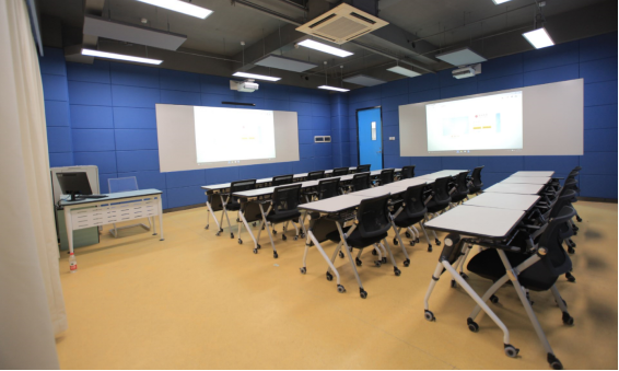 The future classroom is a new type of classroom with remote interactive teaching, including live broadcast software system, display system, blackboard writing system, sound reinforcement system, control system, lighting system and other multi-functional systems. Classroom 303 can complete interactive teaching in groups. Between classroom 303 and classroom 306, live broadcast acquisition terminal, remote teaching terminal, high-definition camera, multi-channel audio processor and other devices can be used to complete joint teaching and interactive discussion. When the teacher is teaching in one of the classrooms, the teaching scene and computer content can be transmitted synchronously to the listening classroom; At the same time, teachers can see the situation of students in the classroom through other display devices beside them; The students who are in the classroom can watch the teaching scene through the projection screen; When there is a need for communication and interaction, the two rooms can be interchangeable, and both can realize the function of lecturing or listening to lectures, and realize the switch between the functions of anchors and listeners. Room 303 provides remote teaching function, you can watch the teaching content through the micro Reliance time.